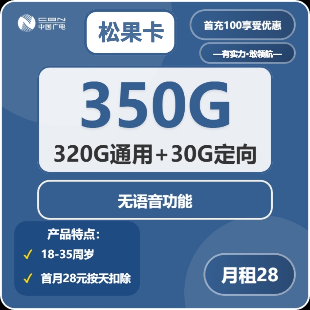 广电松果卡28元包320G通用+30G定向+无语音功能