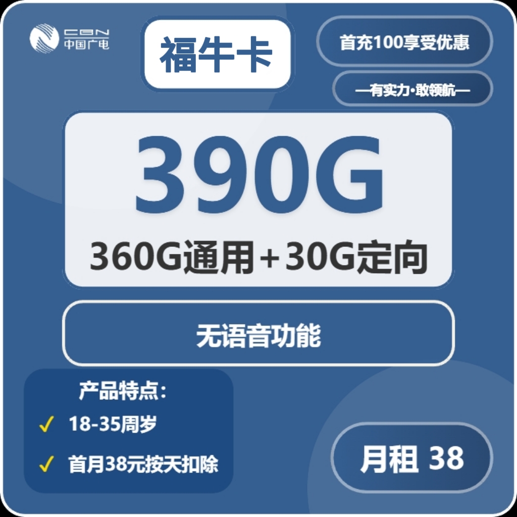广电福牛卡38元包360G通用+30G定向+无语音功能