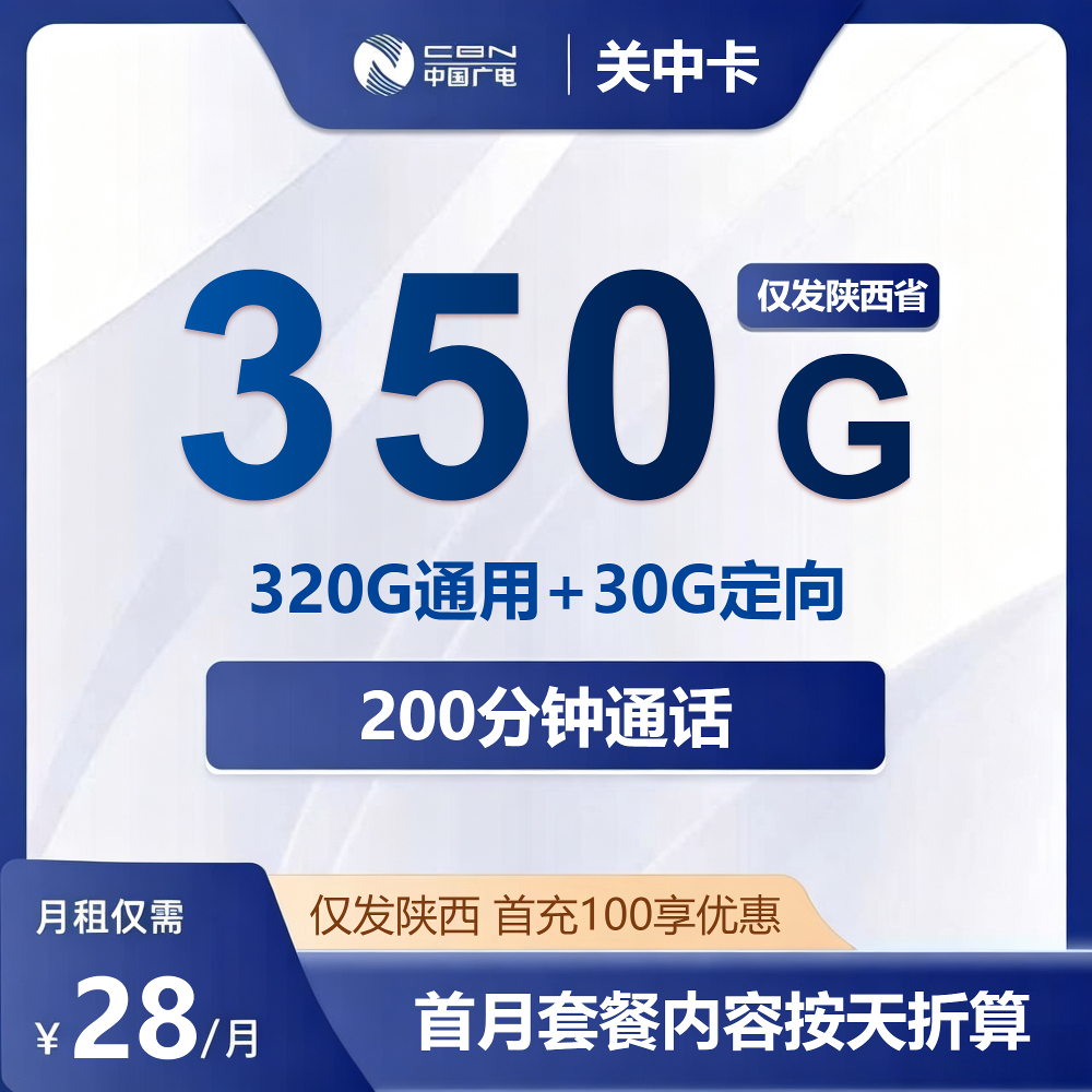 晚霞卡28元包320G通用+30G定向+200分钟通话